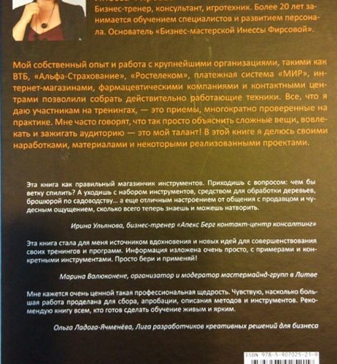 Эта книга стала для меня источником вдохновения и новых идей для совершенствования своих тренингов и программ. Информация изложена очень просто, с примерами и конкретными инструментами. Просто бери и применяй!